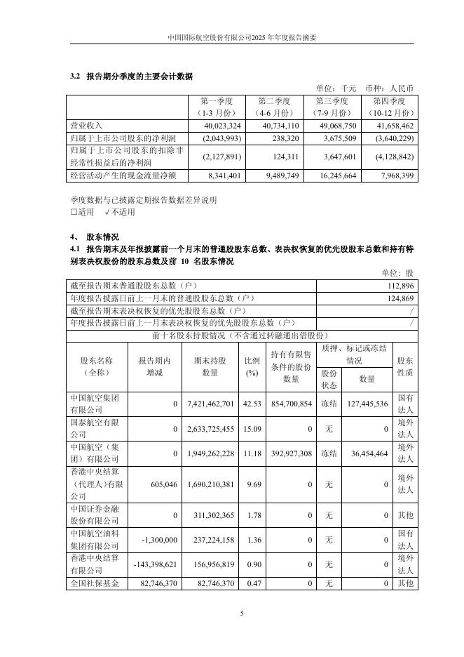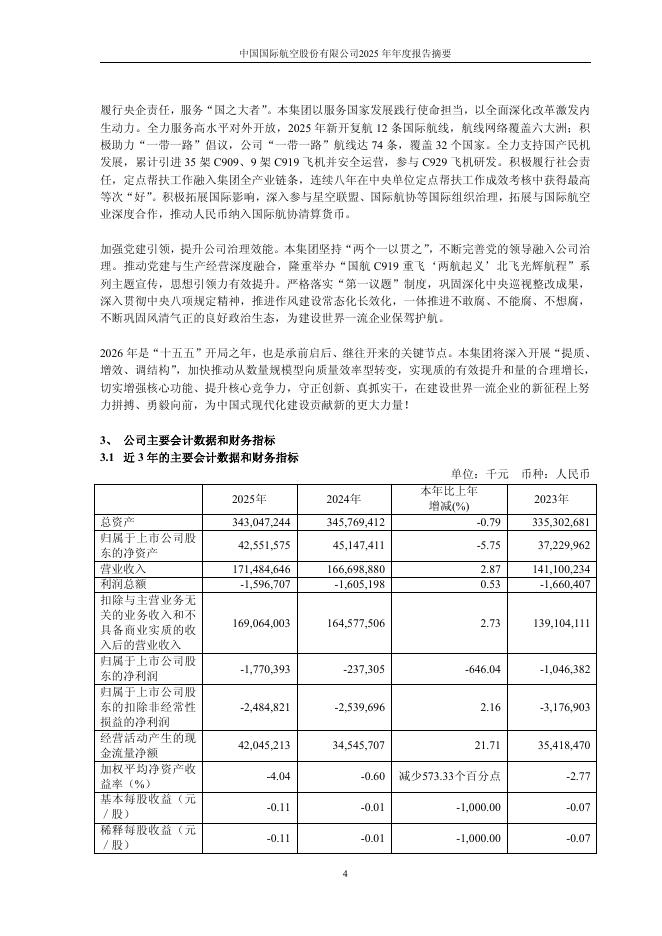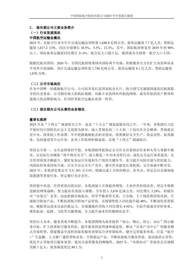 601111-中国国航:中国国际航空股份有限公司2025年度报告摘要.pdf