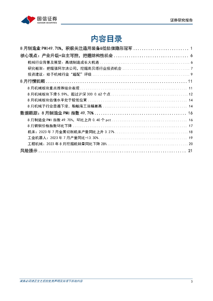 国信证券:机械行业2023年9月投资策略:8月制造业PMI49.70%,积极关注通用装备&低估值隐形冠军.pdf