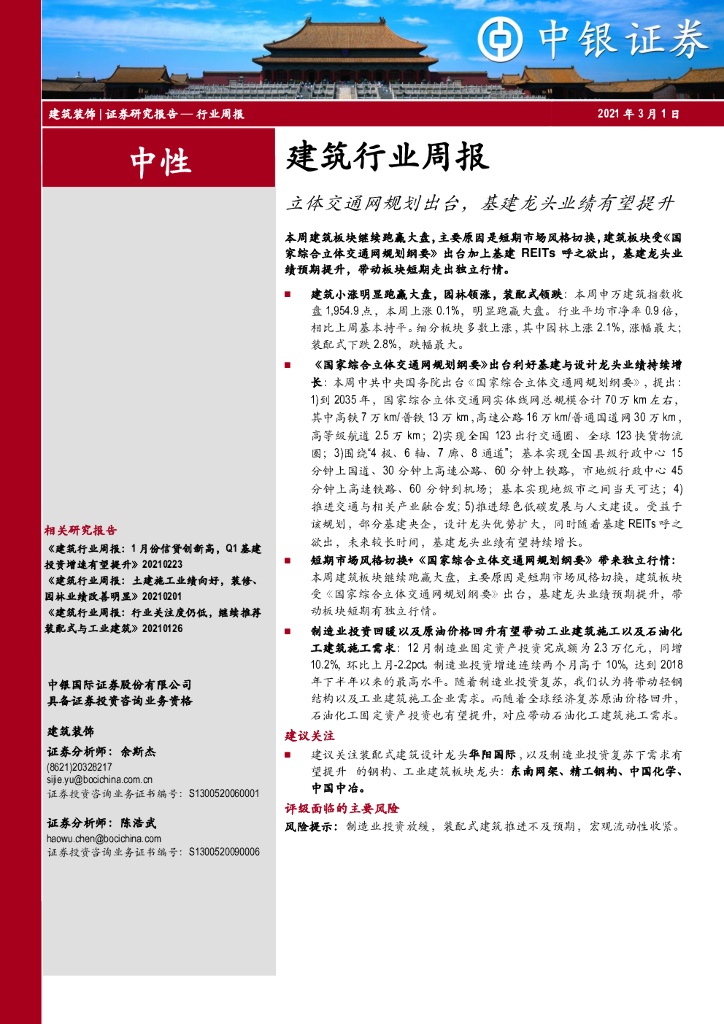 中银证券:建筑行业周报:立体交通网规划出台,基建龙头业绩有望提升.pdf