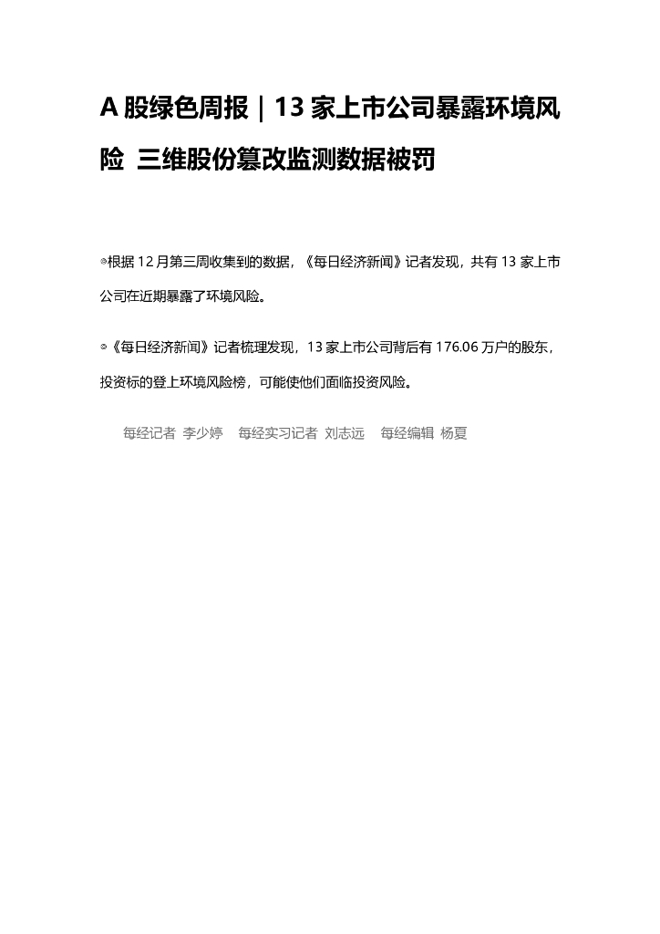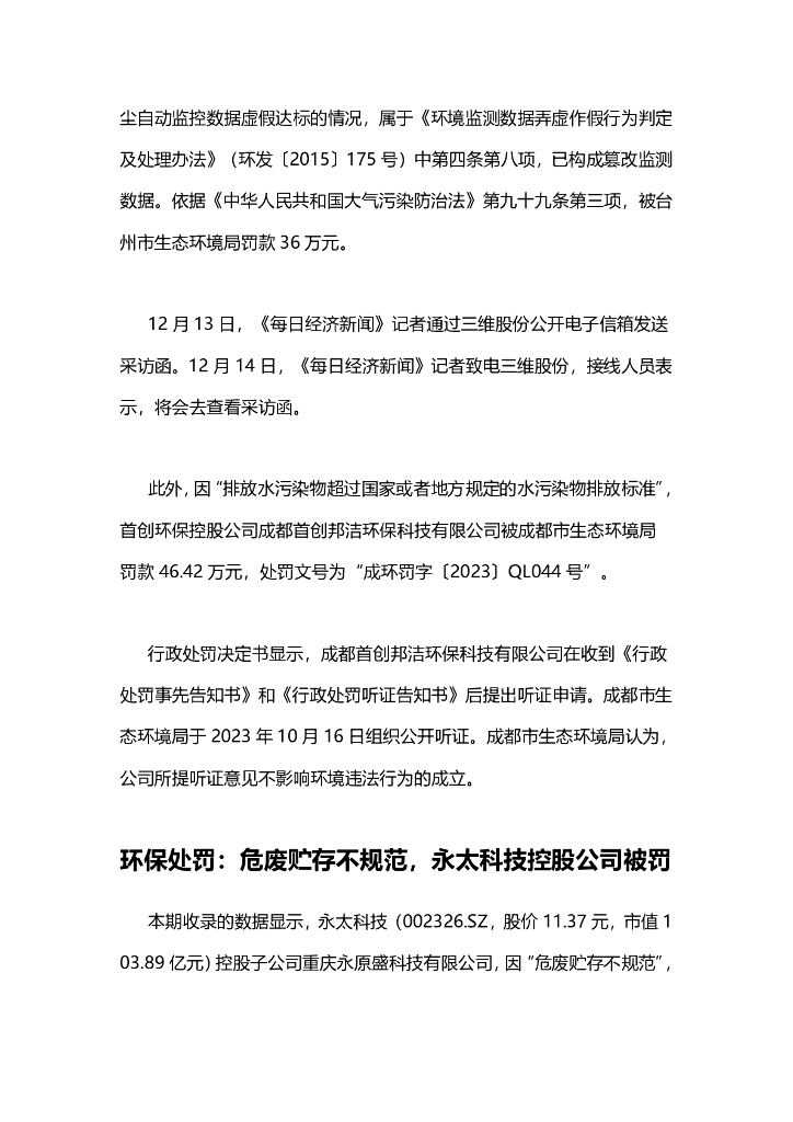 A股绿色周报(2023年12月第三周):13家上市公司暴露环境风险 三维股份篡改监测数据被罚.pdf