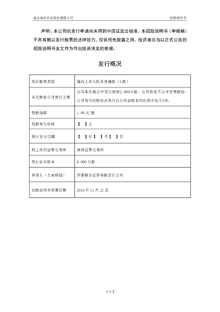 南京海辰药业股份有限公司深交所创业板IPO上市招股说明书.pdf