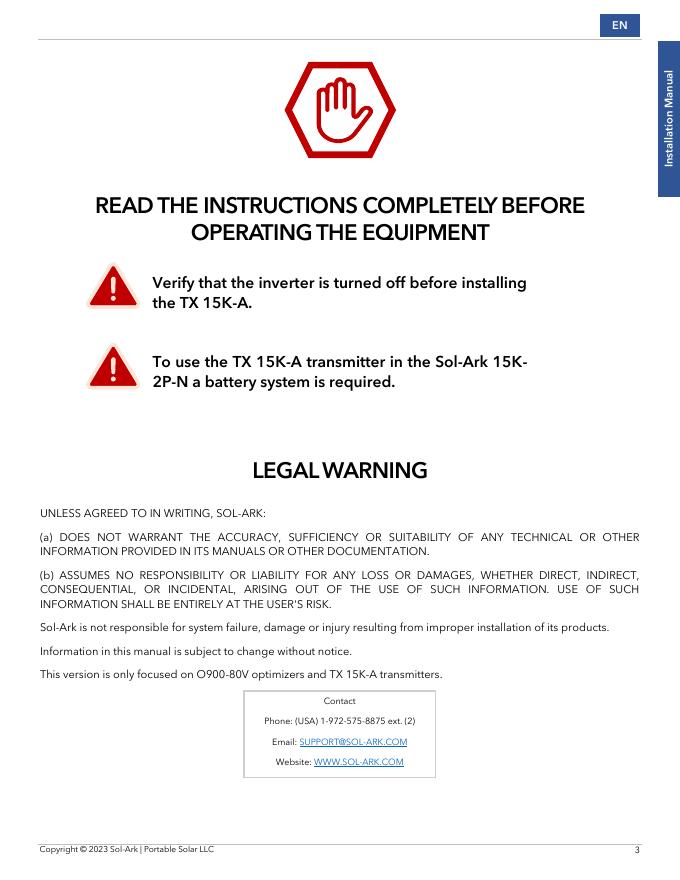 Sol-Ark O900-80V优化器和TX 15K-A发射器安装手册.pdf