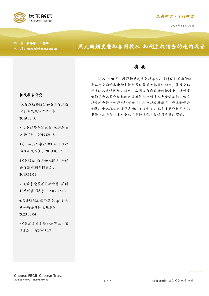 远东资信:黑天鹅频发叠加各国放水 加剧主权债务的违约风险.pdf