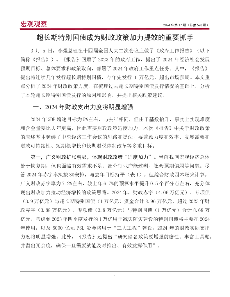 中国银行研究院:《宏观观察》2024年第17期:超长期特别国债成为财政政策加力提效的重要抓手.pdf