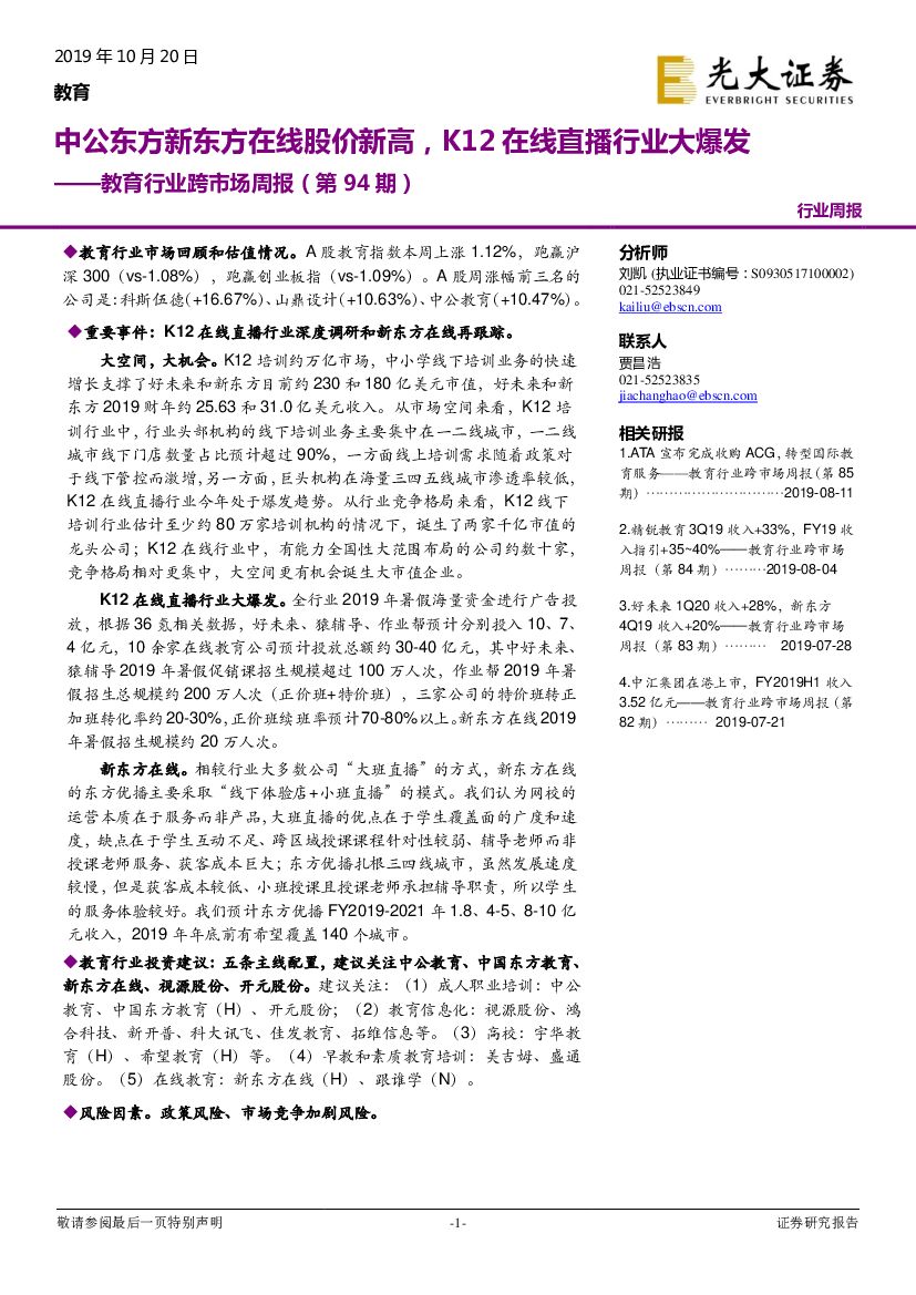 光大证券:教育行业跨市场周报(第94期):中公东方新东方在线股价新高,K12在线直播行业大爆发.pdf