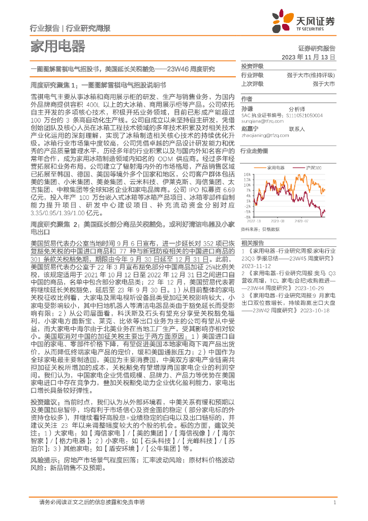 天风证券:家用电器23W46周度研究:一图图解雪祺电气招股书,美国延长关税豁免.pdf