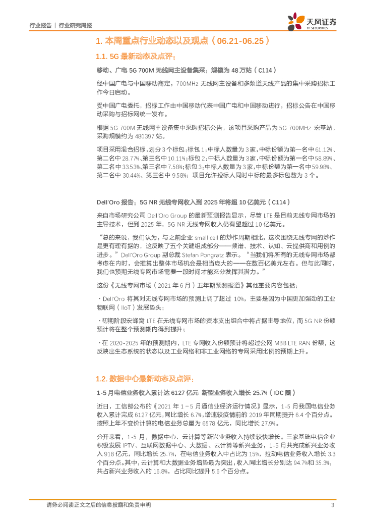 天风证券:通信行业研究周报:700M主设备发标,5G网络建设和5G应用产业链加速推进.pdf