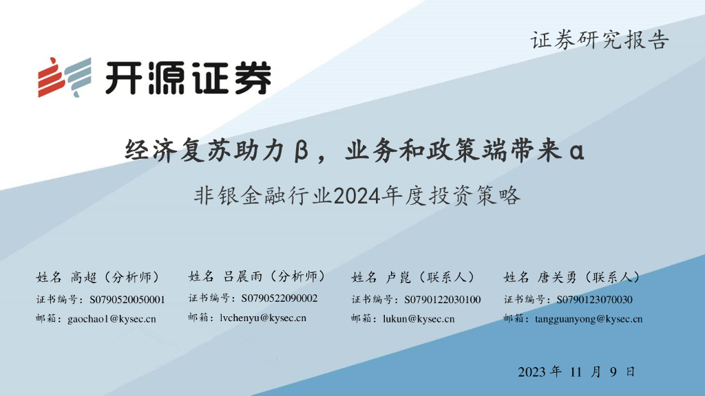 开源证券:非银金融行业2024年度投资策略:经济复苏助力β,业务和政策端带来α.pdf
