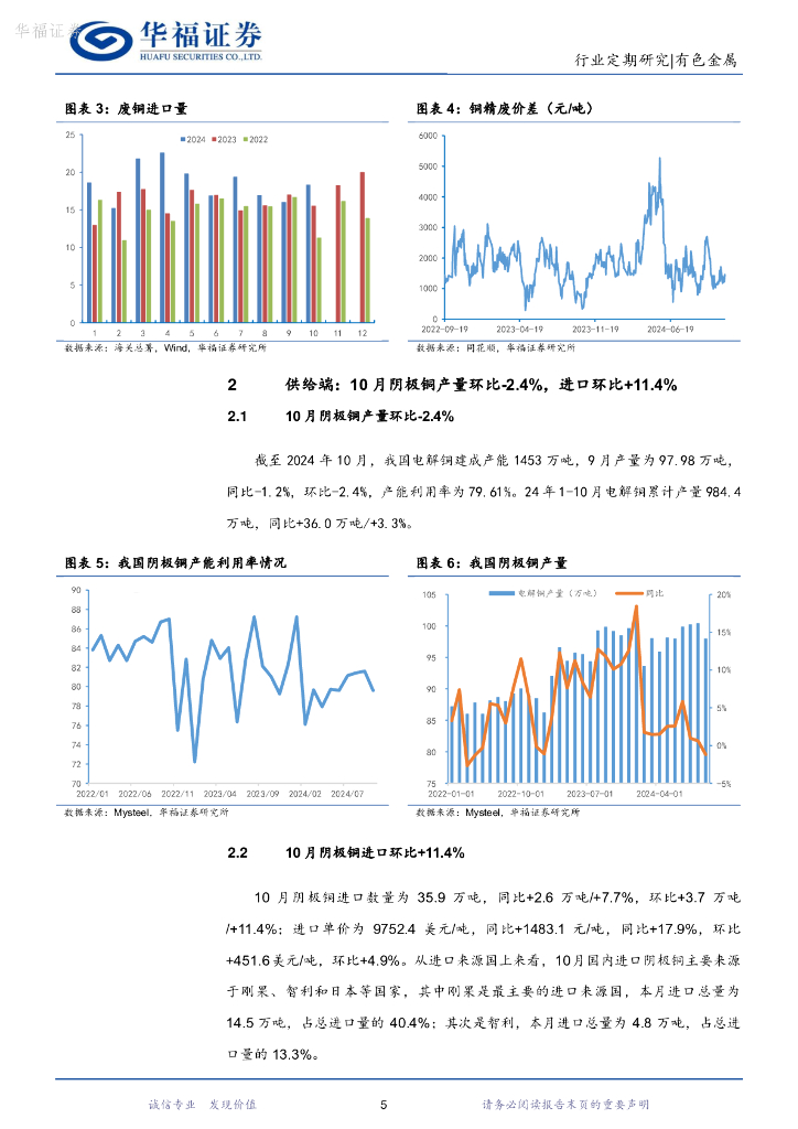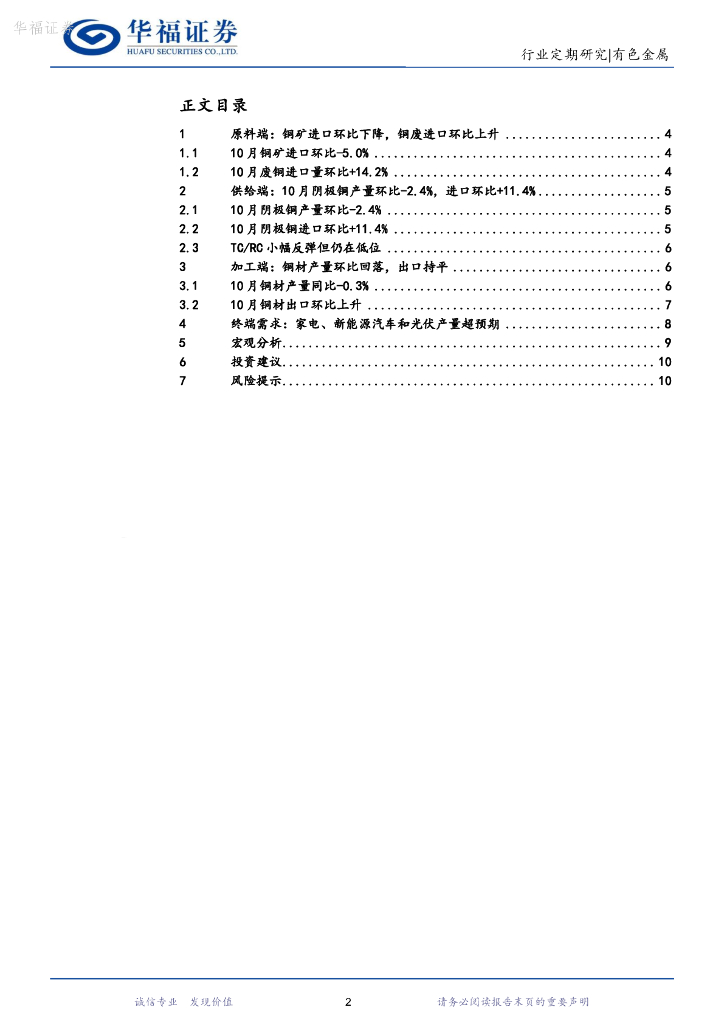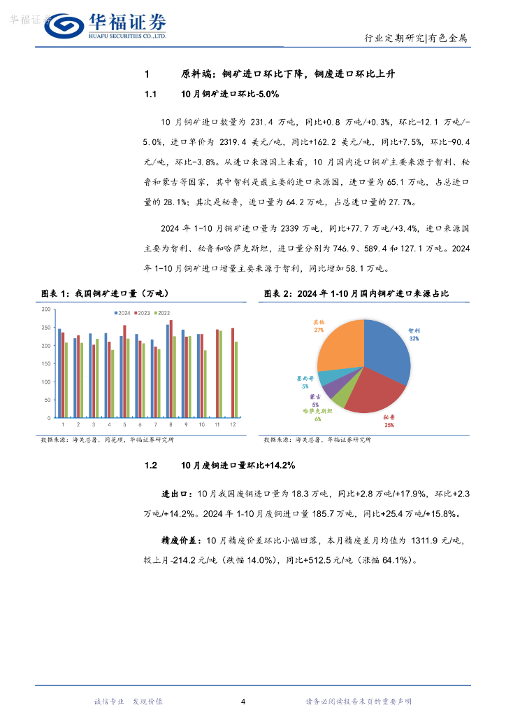华福证券:铜月报(202411):10月铜矿进口环比回落,加工费持稳处于低位.pdf
