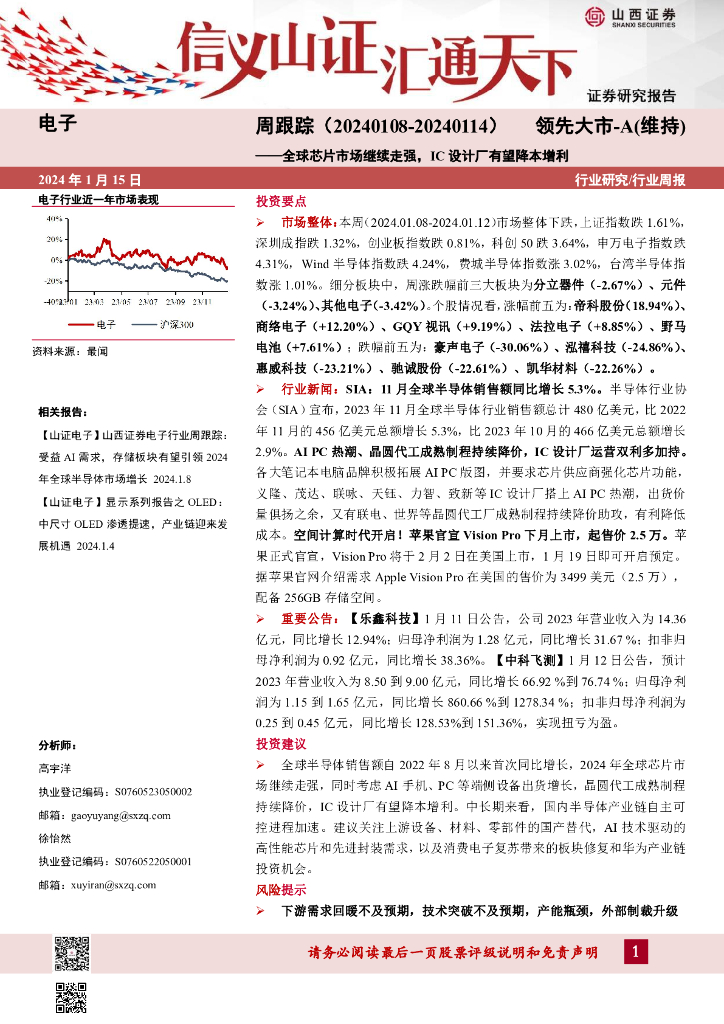 山西证券:电子周跟踪:全球芯片市场继续走强,IC设计厂有望降本增利.pdf