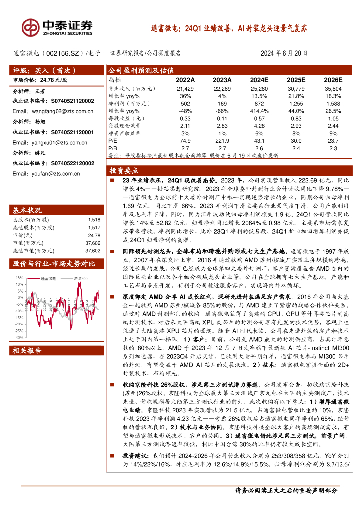 中泰证券:通富微电:24Q1业绩改善,AI封装龙头迎景气复苏.pdf