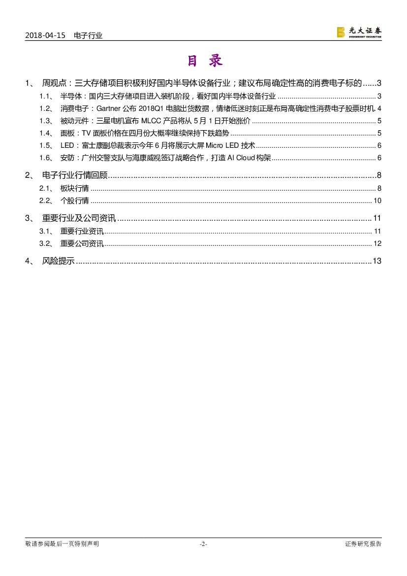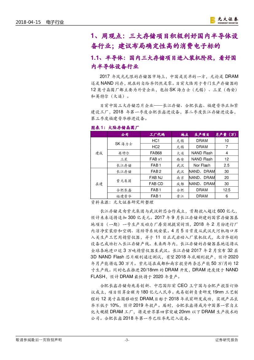 光大证券:电子行业周报:三大存储项目积极利好国内半导体设备行业;建议布局确定性高的消费电子标的.pdf