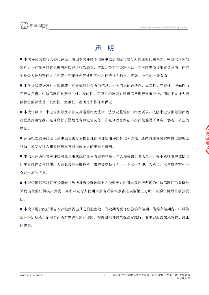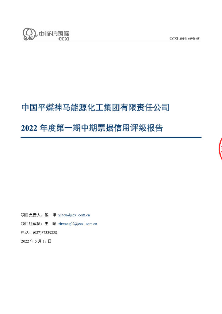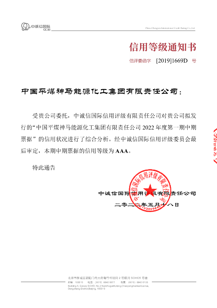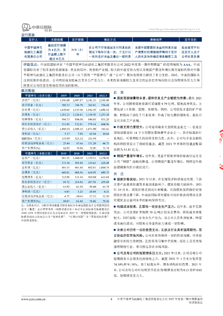 中诚信:中国平煤神马能源化工集团有限责任公司2022年度第一期中期票据信用评级报告.pdf