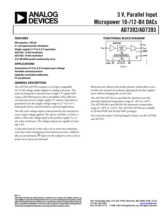 ANALOG DEVICES AD7392 英文产品数据手册.pdf