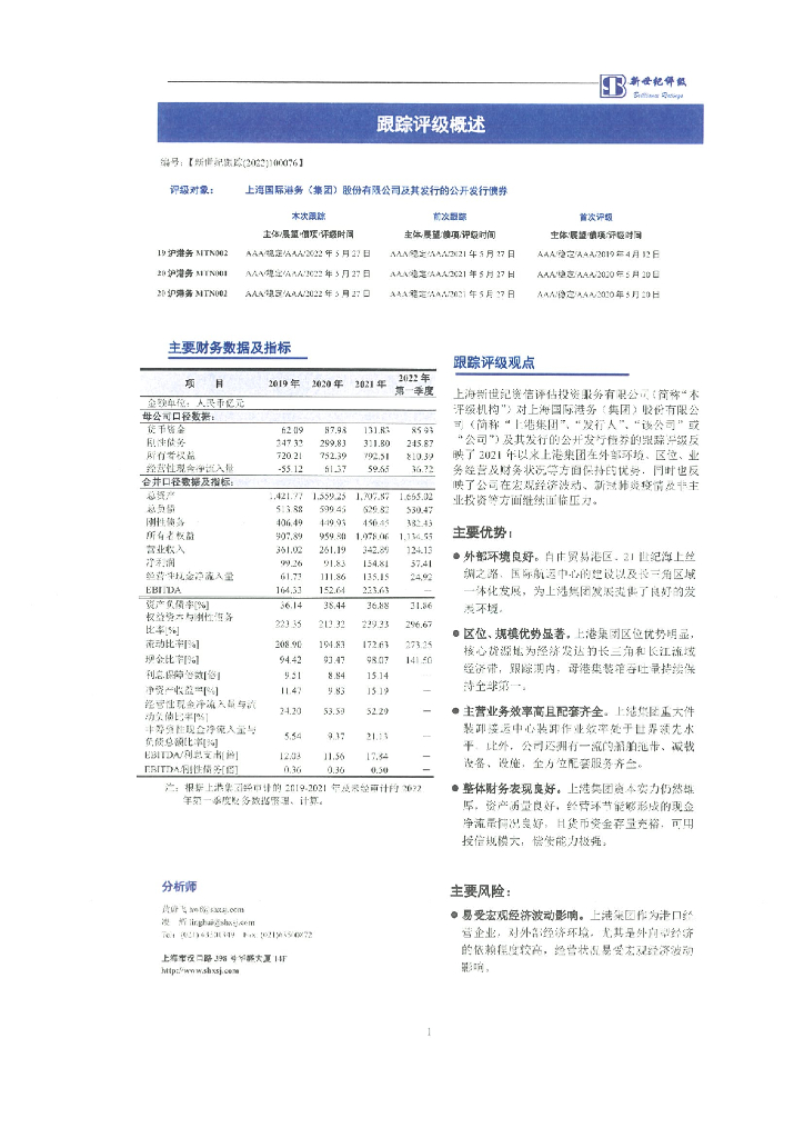 新世纪:上海国际港务(集团)股份有限公司及其发行的公开发行债券跟踪评级报告.pdf