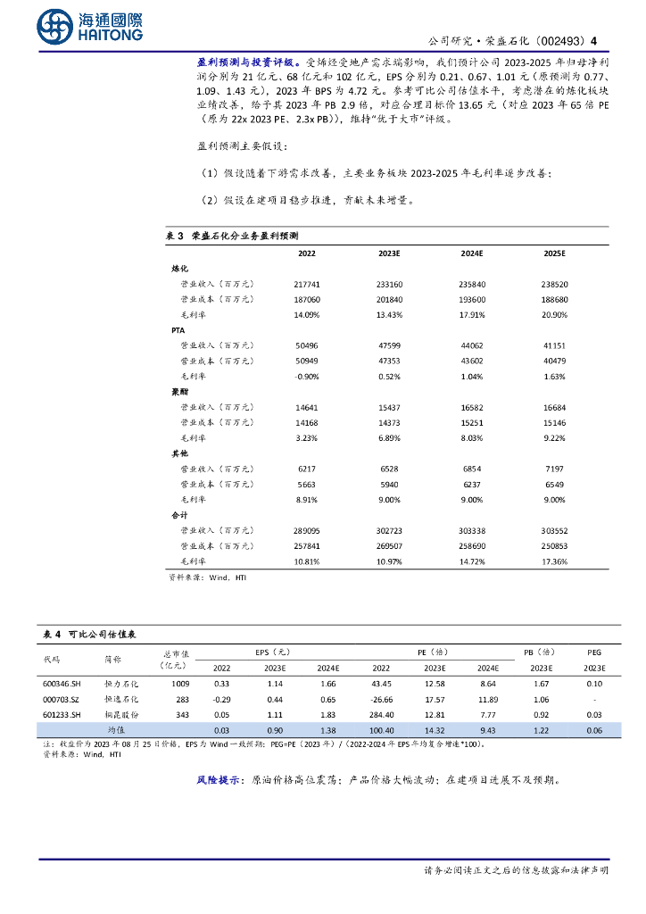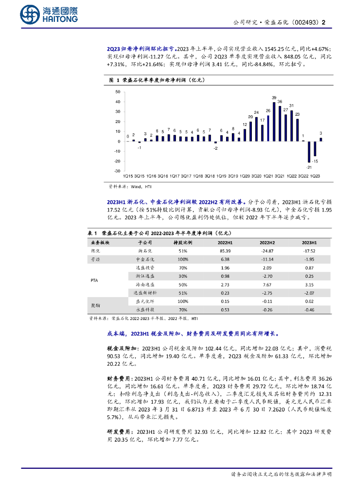 海通国际:荣盛石化(002493)-公司半年报:盈利逐步修复,2Q23环比扭亏.pdf