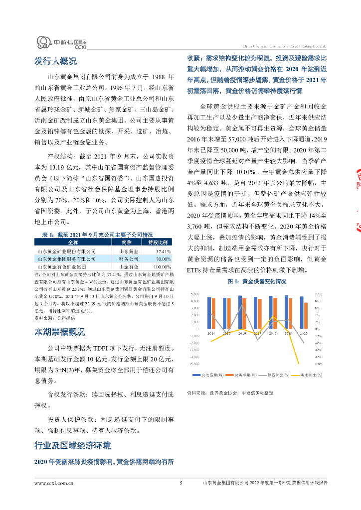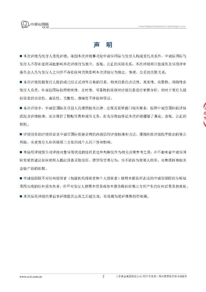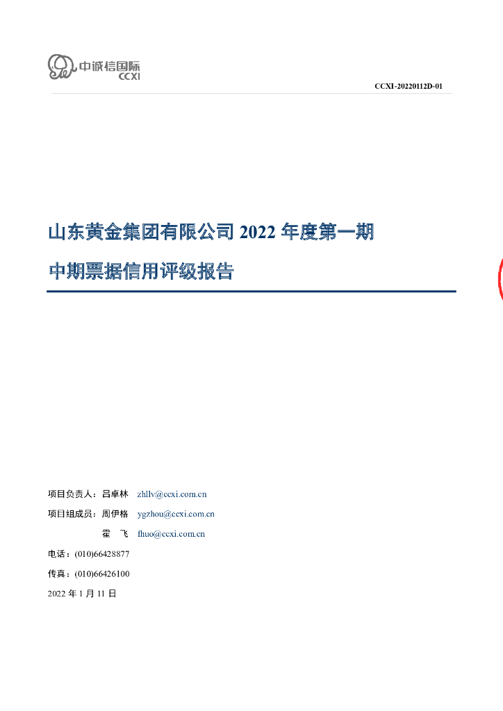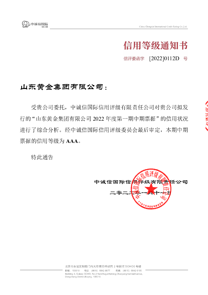中诚信:山东黄金集团有限公司2022年度第一期中期票据信用评级报告.pdf