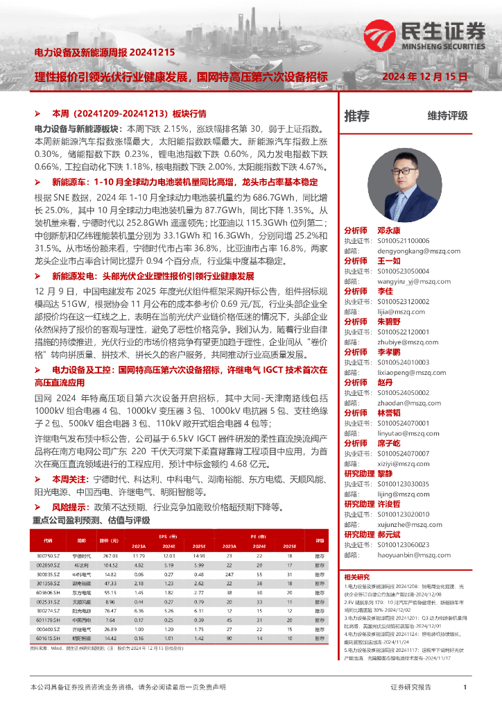 民生证券:电力设备及新能源周报:理性报价引领光伏行业健康发展,国网特高压第六次设备招标.pdf