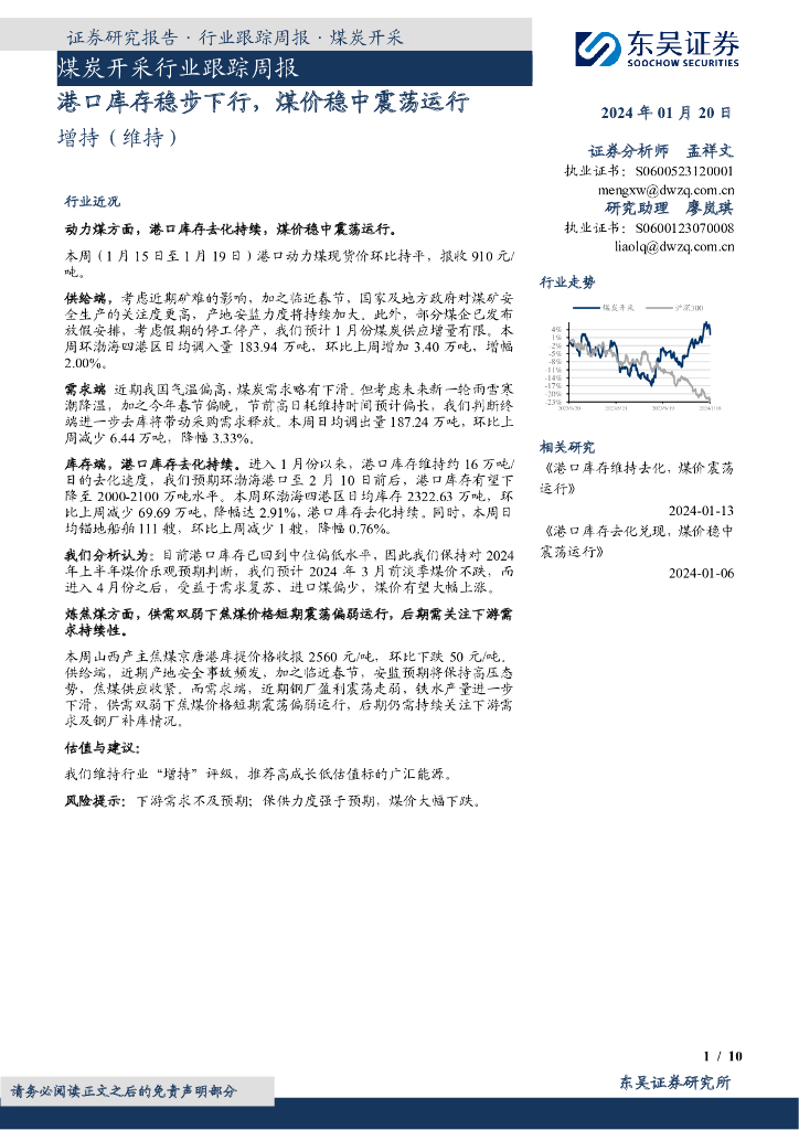 东吴证券:煤炭开采行业跟踪周报:港口库存稳步下行,煤价稳中震荡运行.pdf