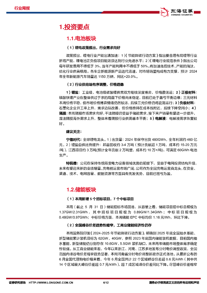 东海证券:电池及储能行业周报:锂电政策频出,全国工商业峰谷价差收窄.pdf