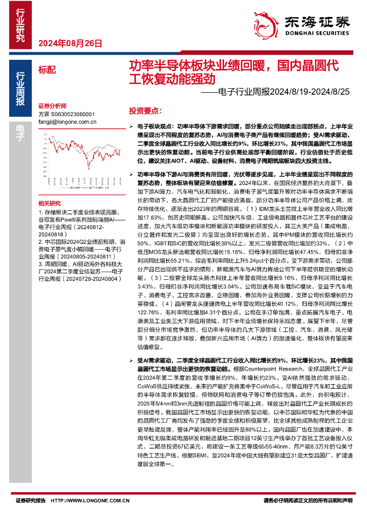 东海证券:电子行业周报:功率半导体板块业绩回暖,国内晶圆代工恢复动能强劲.pdf