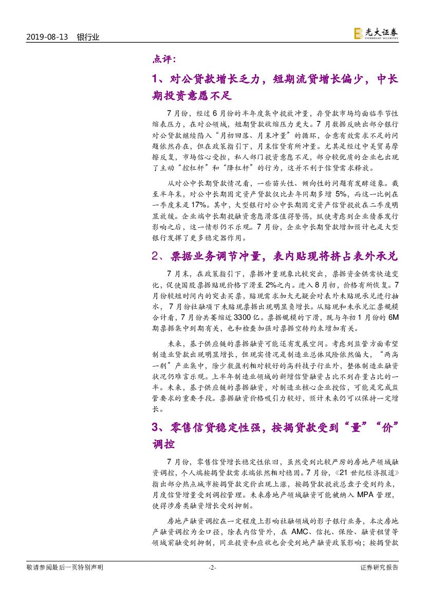 光大证券:银行业2019年7月金融数据点评:信贷需求偏弱,表外融资萎缩.pdf