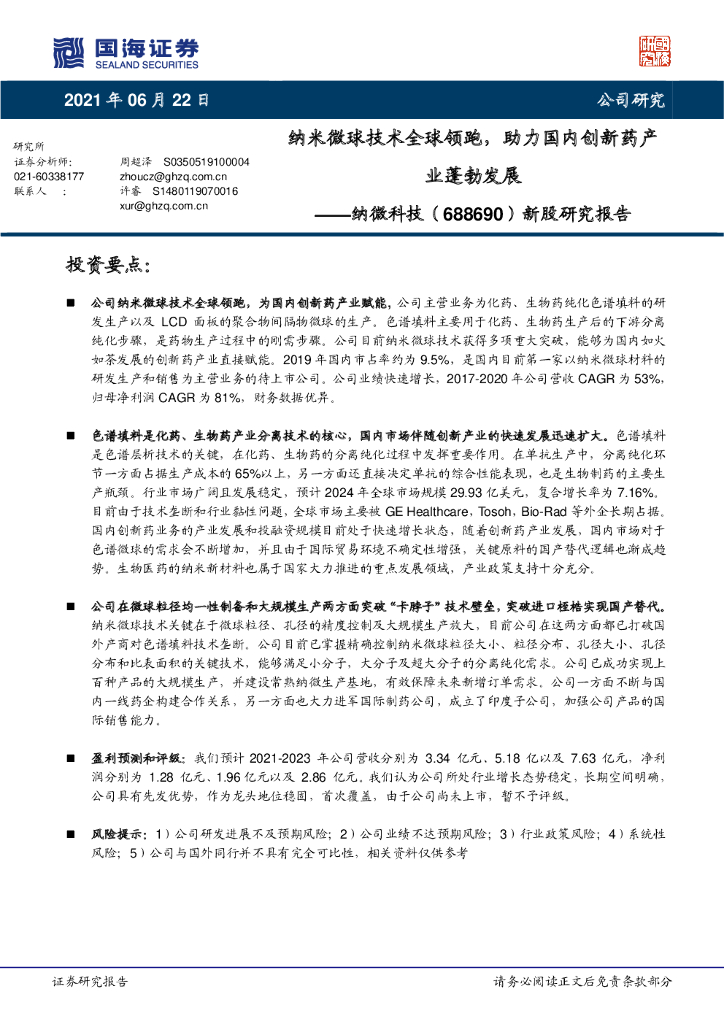 国海证券:纳微科技:纳米微球技术全球领跑,助力国内创新药产业蓬勃发展.pdf