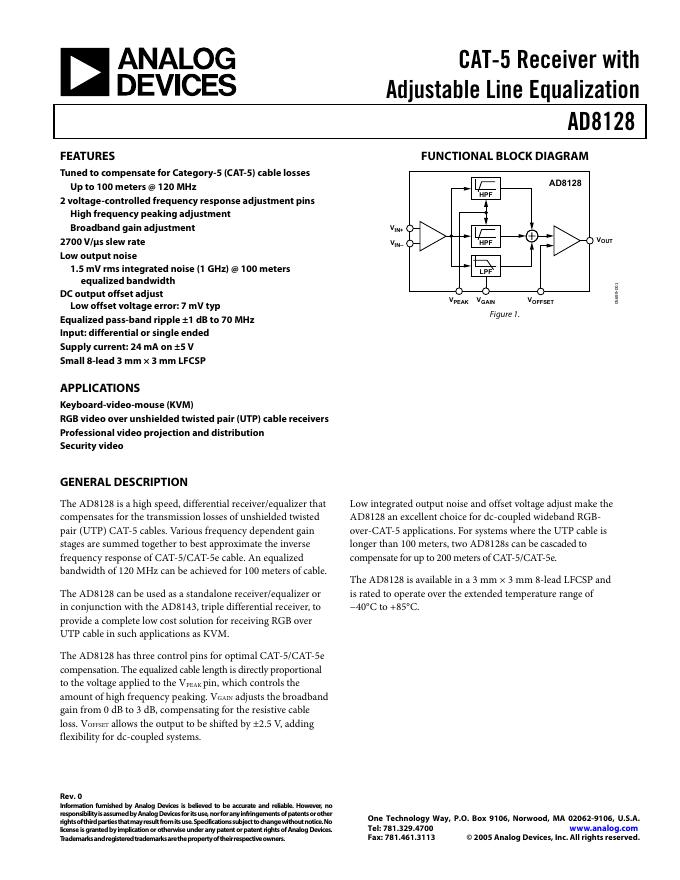 ANALOG DEVICES AD8322 英文产品数据手册 AD8128 英文产品数据手册.pdf