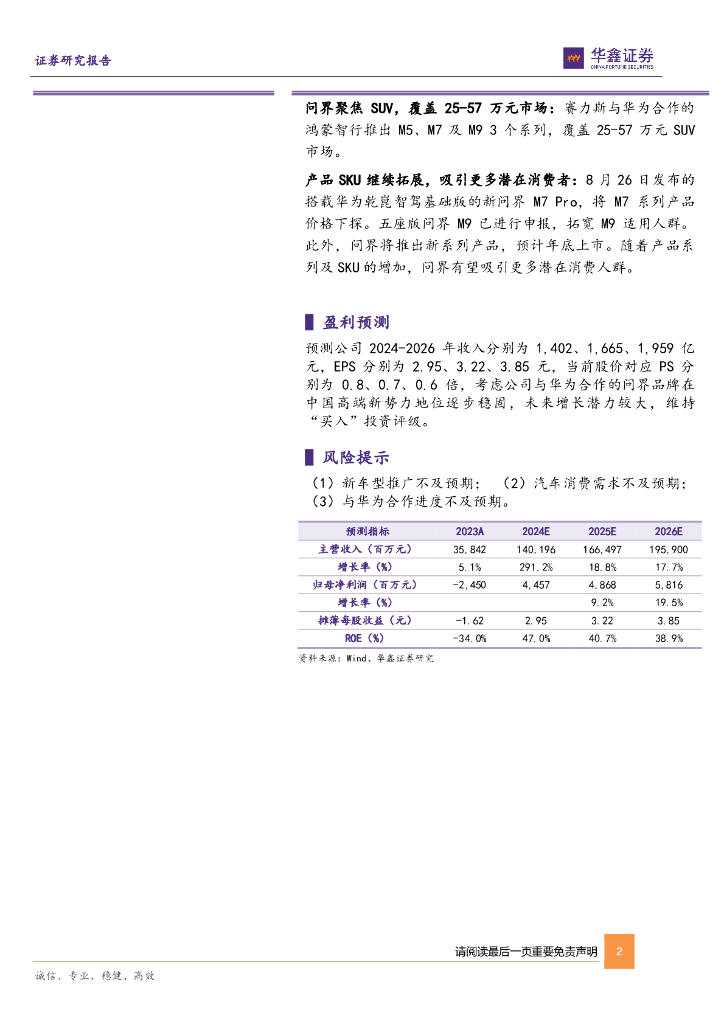 华鑫证券:赛力斯(601127)-公司动态研究报告:2024年半年报点评:M9带动毛利率提升,入股引望深化合作.pdf