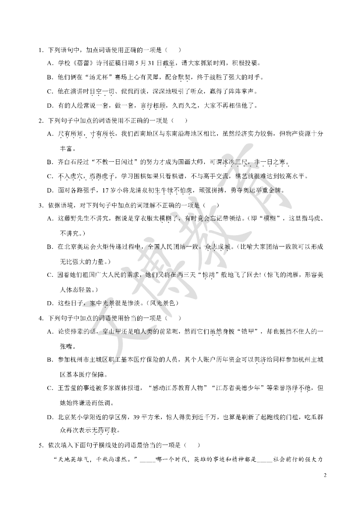 ——中考班寒假语文典题精炼02正确使用词语.pdf