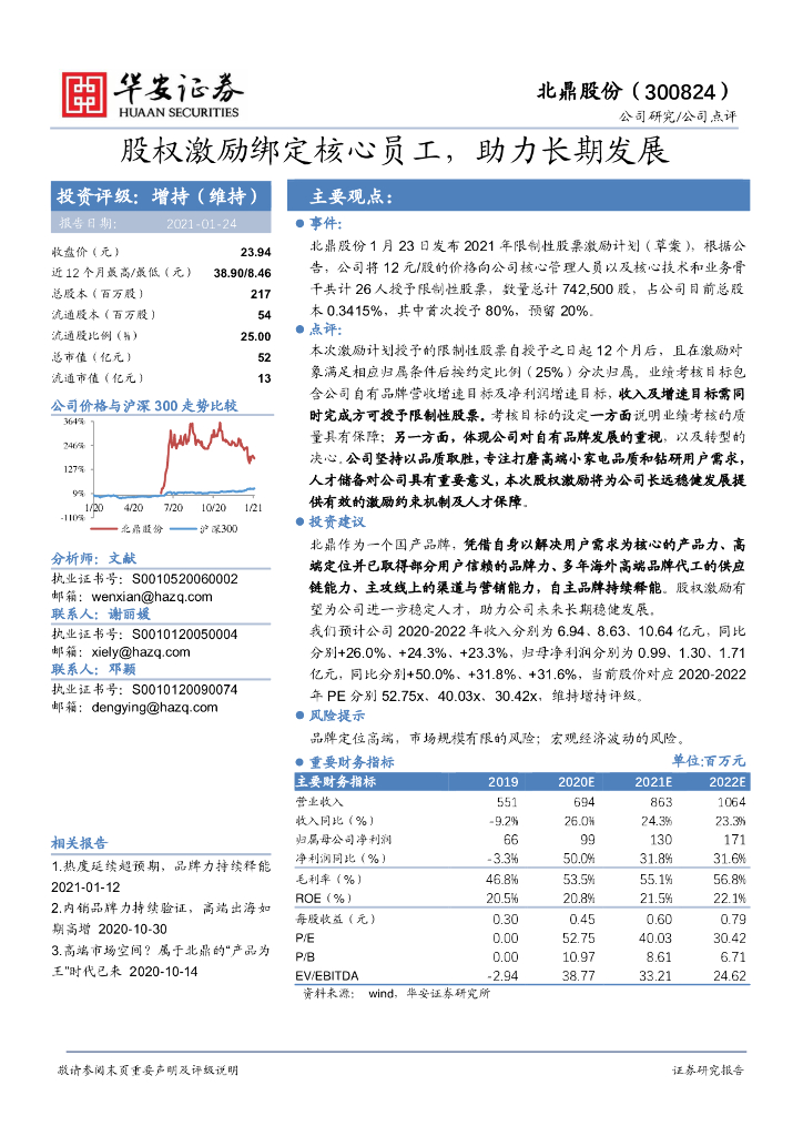 华安证券:北鼎股份(300824)-股权激励绑定核心员工,助力长期发展.pdf