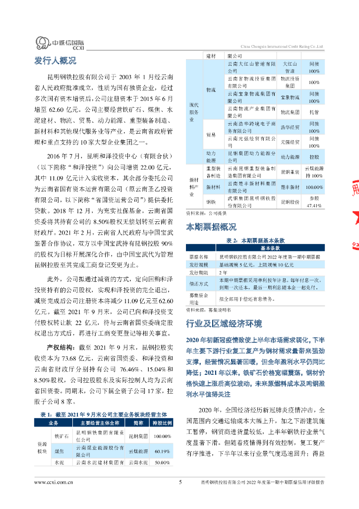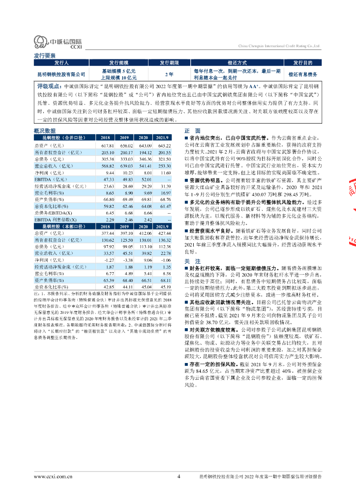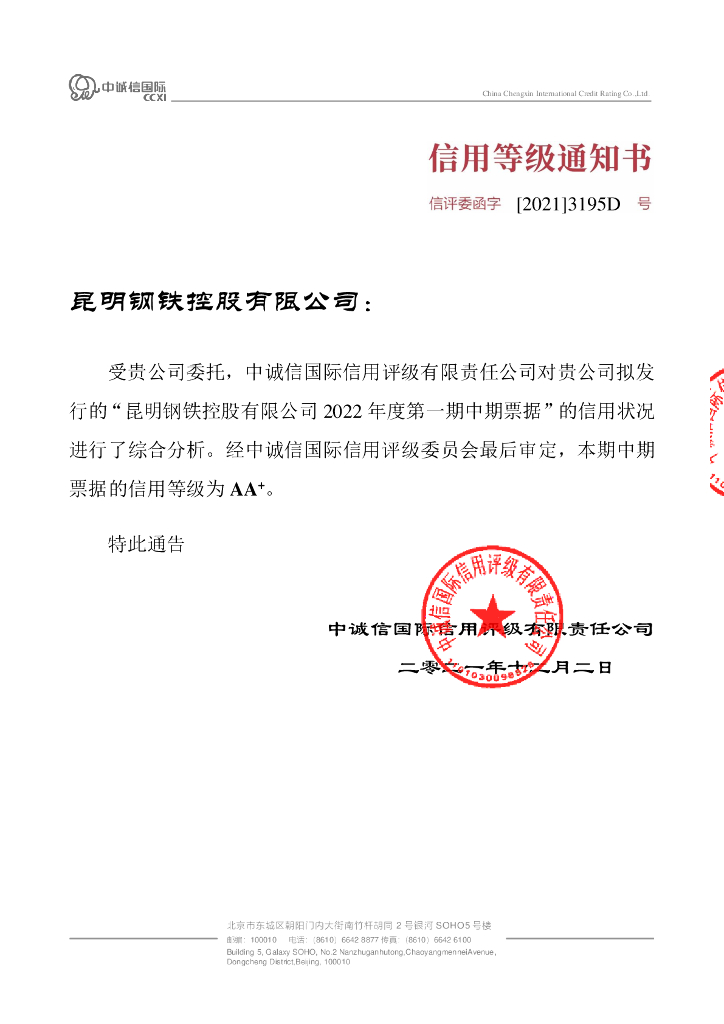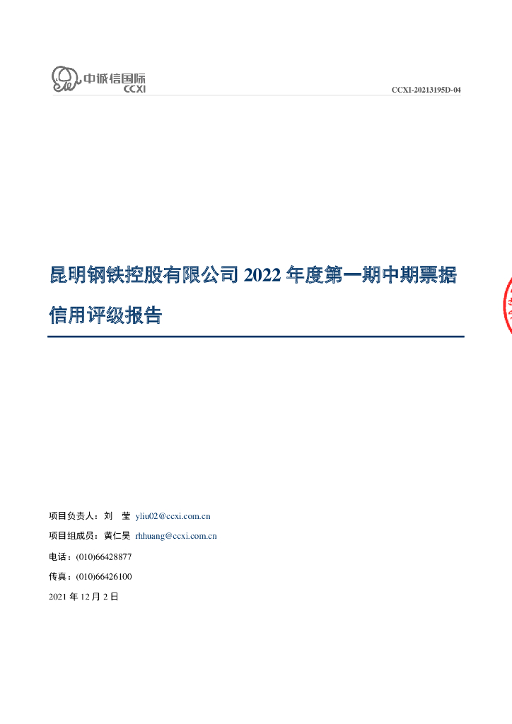 中诚信:昆明钢铁控股有限公司2022年度第一期中期票据信用评级报告.pdf