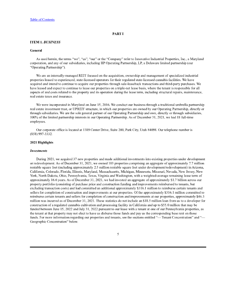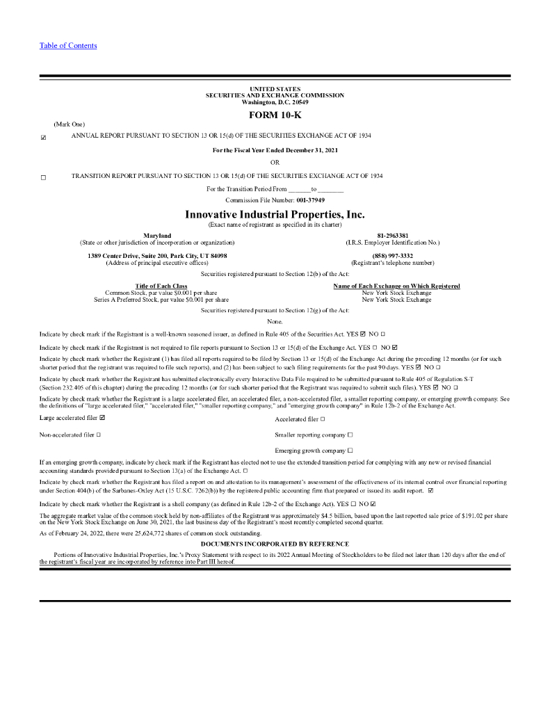 Innovative Industrial Properties Inc(IIPR)2021财年年度报告(英文版).pdf