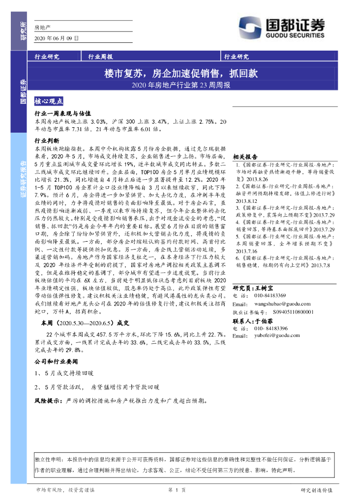 国都证券:2020年房地产行业第23周周报:楼市复苏,房企加速促销售,抓回款.pdf