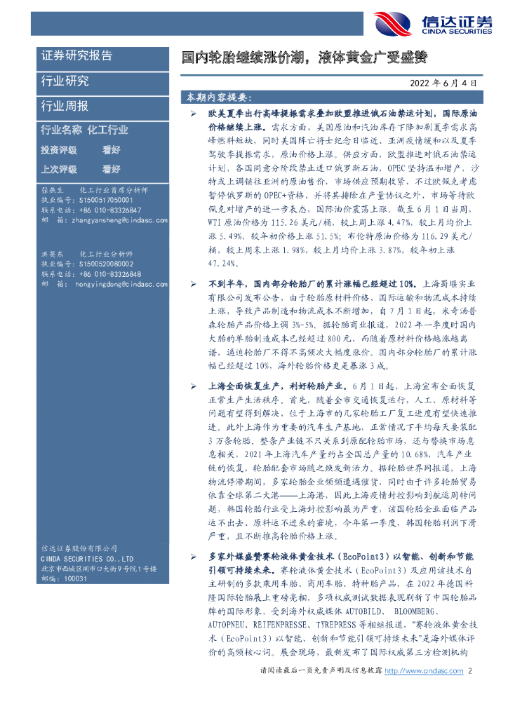 信达证券:化工行业周报:国内轮胎继续涨价潮,液体黄金广受盛赞.pdf