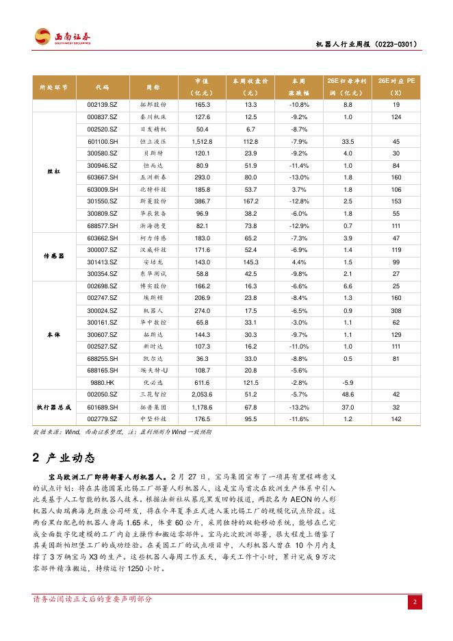 西南证券:机器人行业周报:宇树科技发布新款机器狗,宝马欧洲工厂即将部署人形机器人.pdf