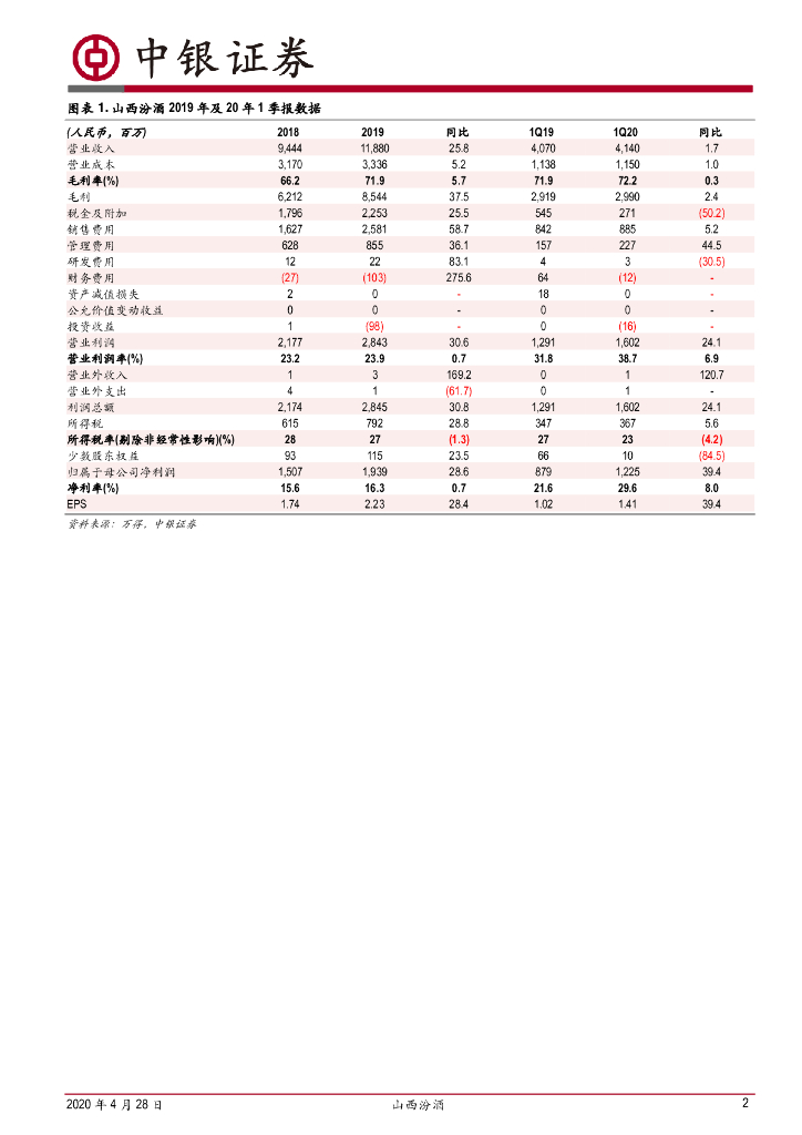 中银证券:山西汾酒(600809)-疫情之下1季度营收增速放缓,2020年高增长目标不变.pdf