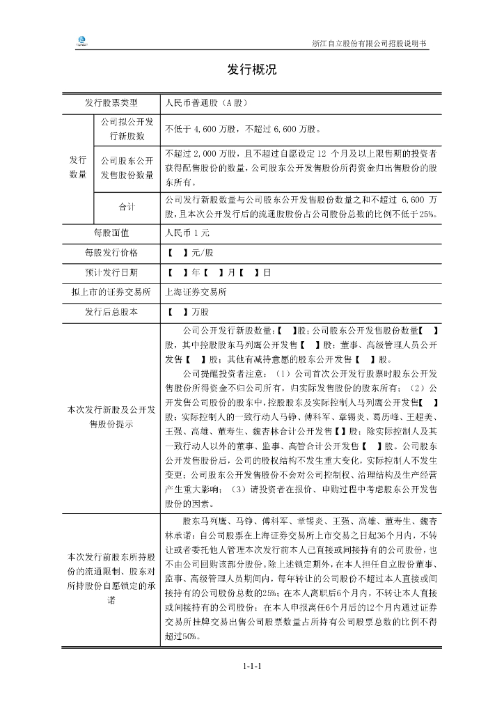 浙江自立股份有限公司上交所主板IPO上市招股说明书.pdf