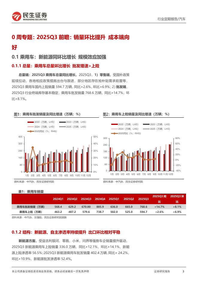民生证券:汽车和汽车零部件行业周报:2025Q3前瞻:销量环比提升成本端向好.pdf
