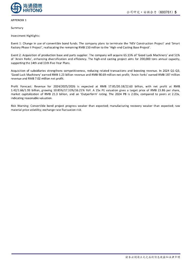 海通国际:安徽合力(600761)-公司公告点评:加强零部件与高端铸件能力,助力业务结构优化、竞争力提升.pdf
