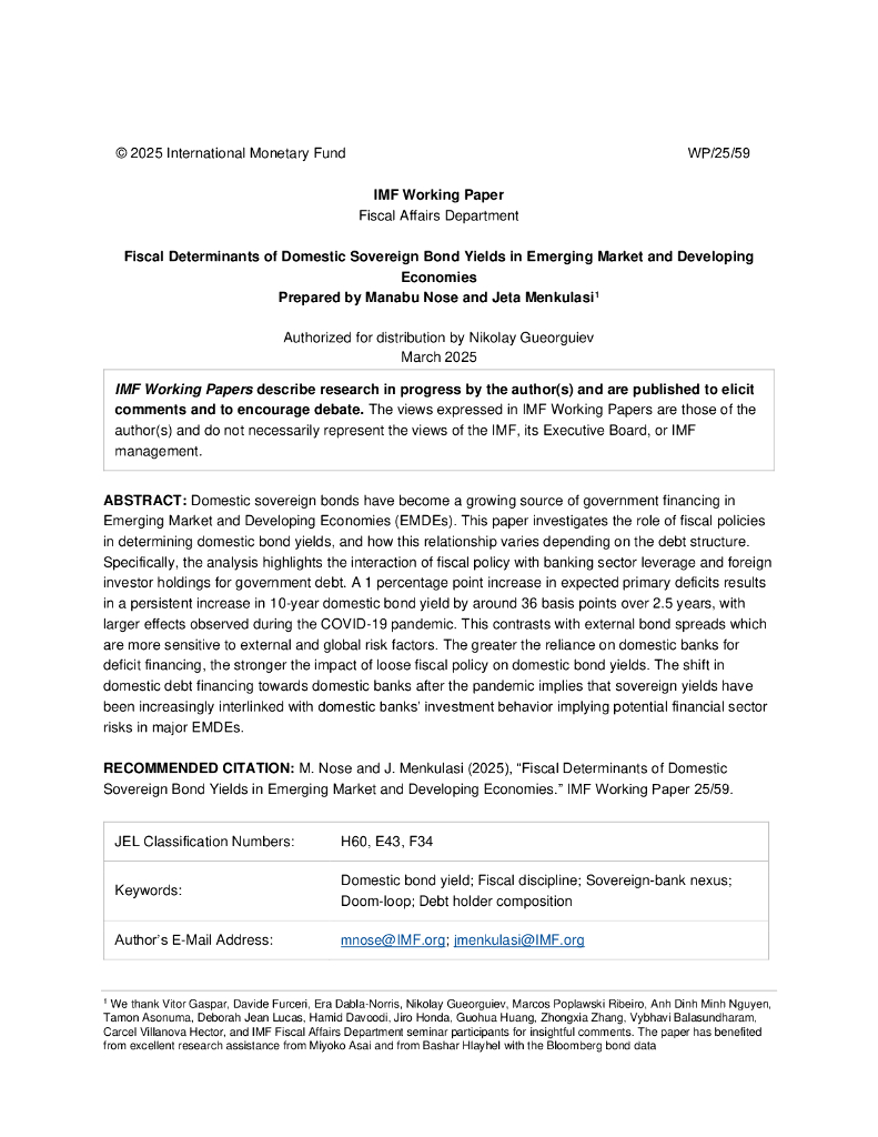 国际货币基金组织:新兴市场和发展中经济体国内主权债券收益率的财政决定因素(英文版).pdf