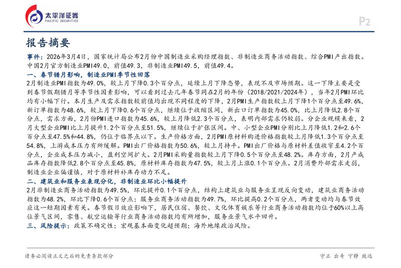 太平洋证券:2月PMI数据点评:春节错月影响,制造业PMI季节性回落-260308.pdf