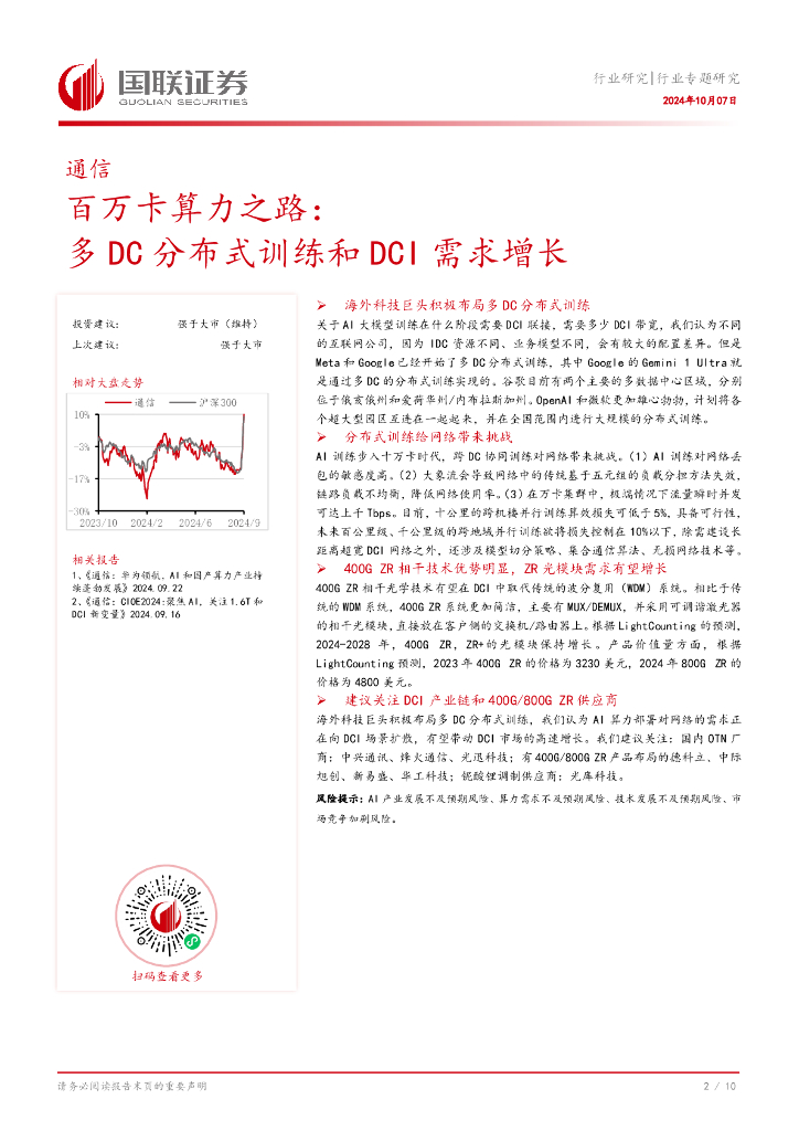 国联证券:通信行业专题研究:百万卡算力之路:多DC分布式训练和DCI需求增长.pdf