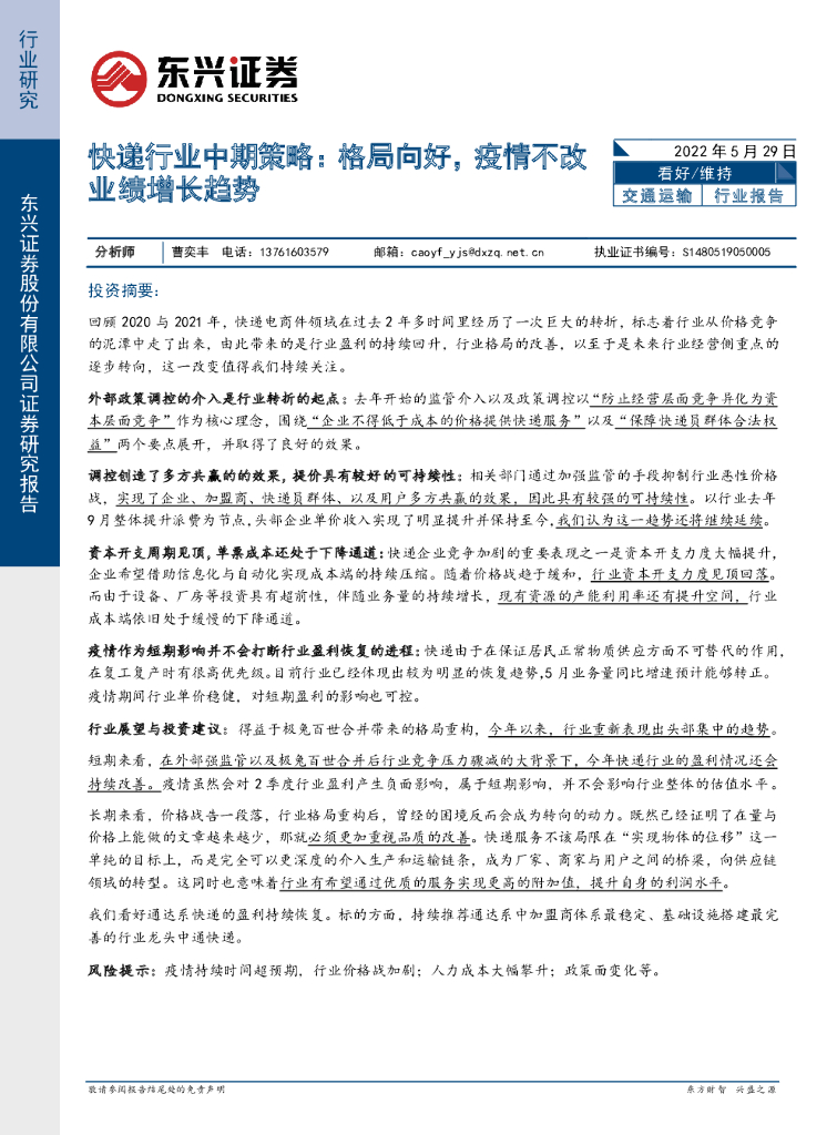 东兴证券:快递行业中期策略:格局向好,疫情不改业绩增长趋势.pdf