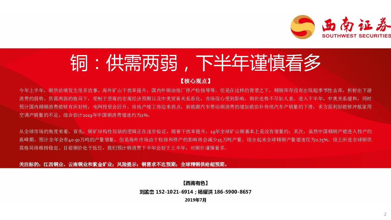 西南证券:铜铝2019年中期策略:回归基本面,供需格局将有所改善.pdf