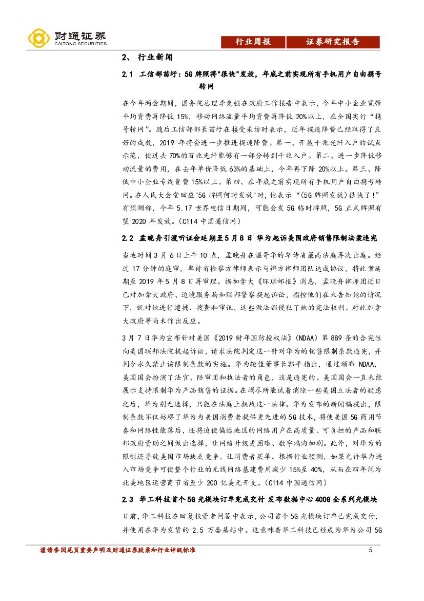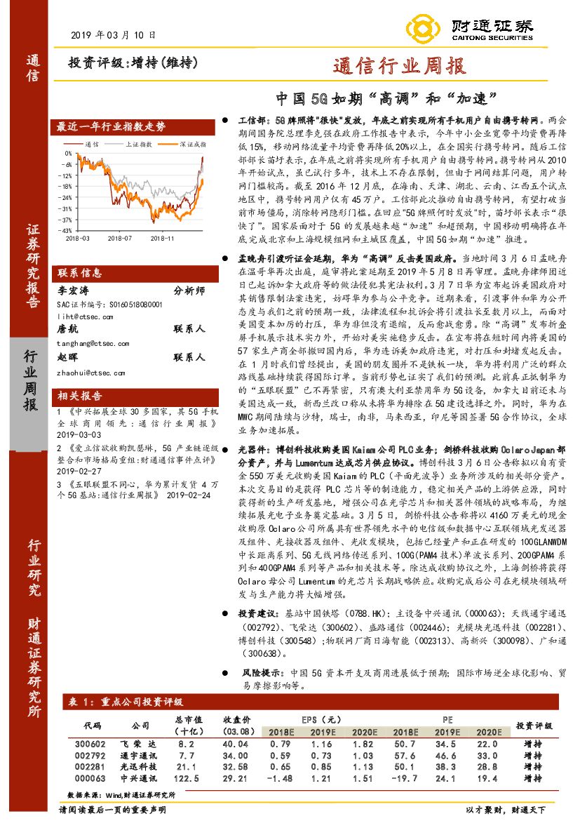 财通证券:通信行业周报:中国5G如期“高调”和“加速”.pdf
