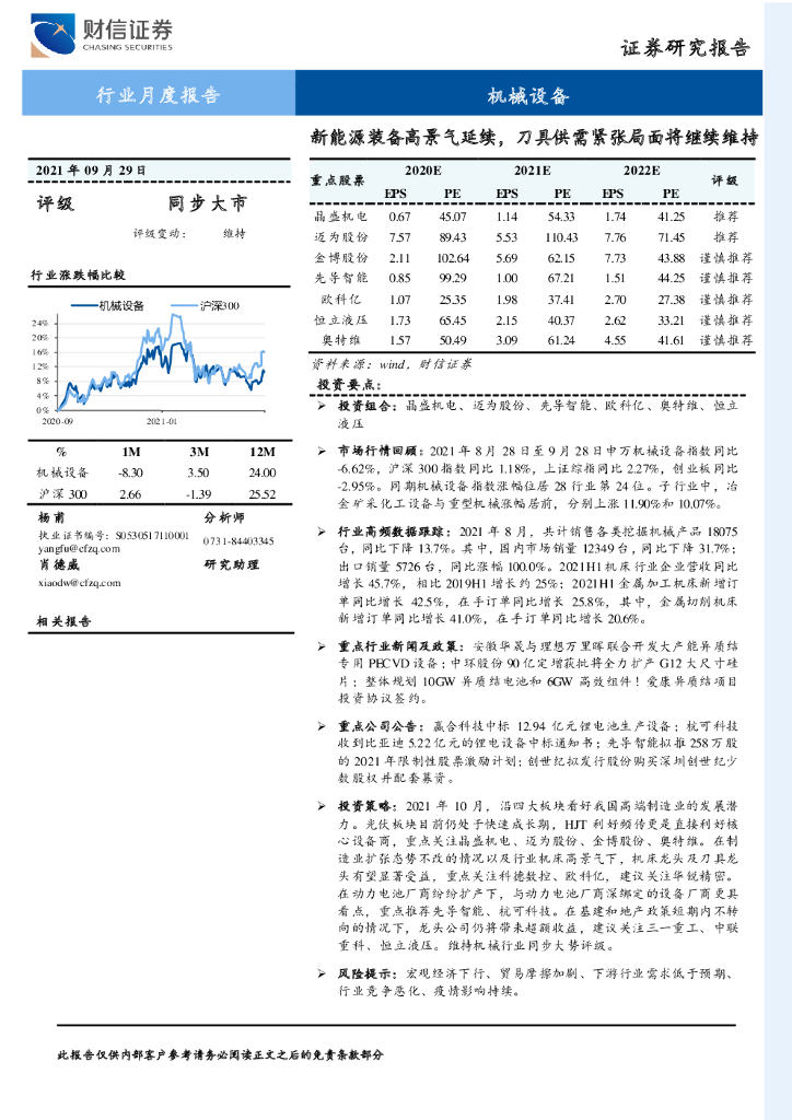 财信证券:机械设备行业月度报告:新能源装备高景气延续,刀具供需紧张局面将继续维持.pdf