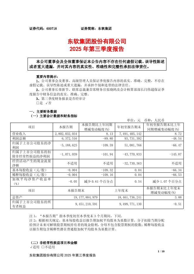 600718-东软集团:东软集团2025年第三季度报告.pdf