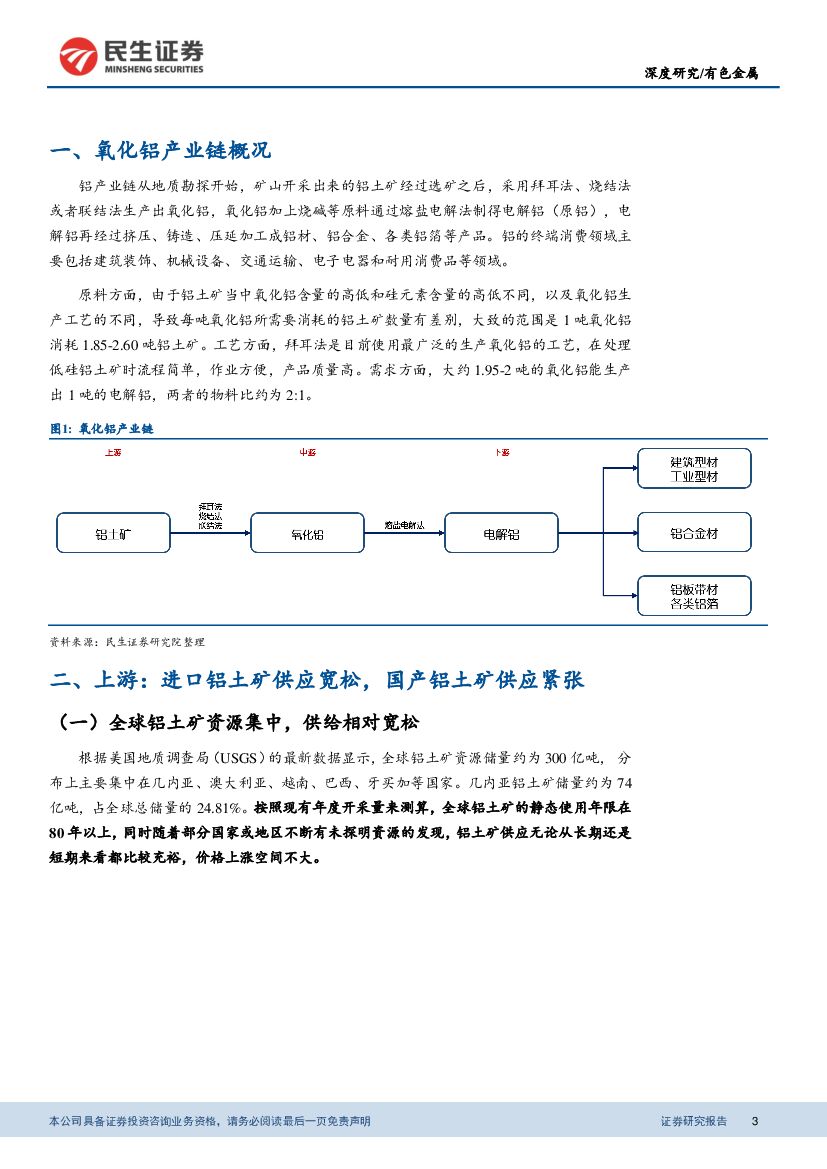 民生证券:铝行业系列报告之(一):供给端干扰因素频发,全球氧化铝供需短缺.pdf