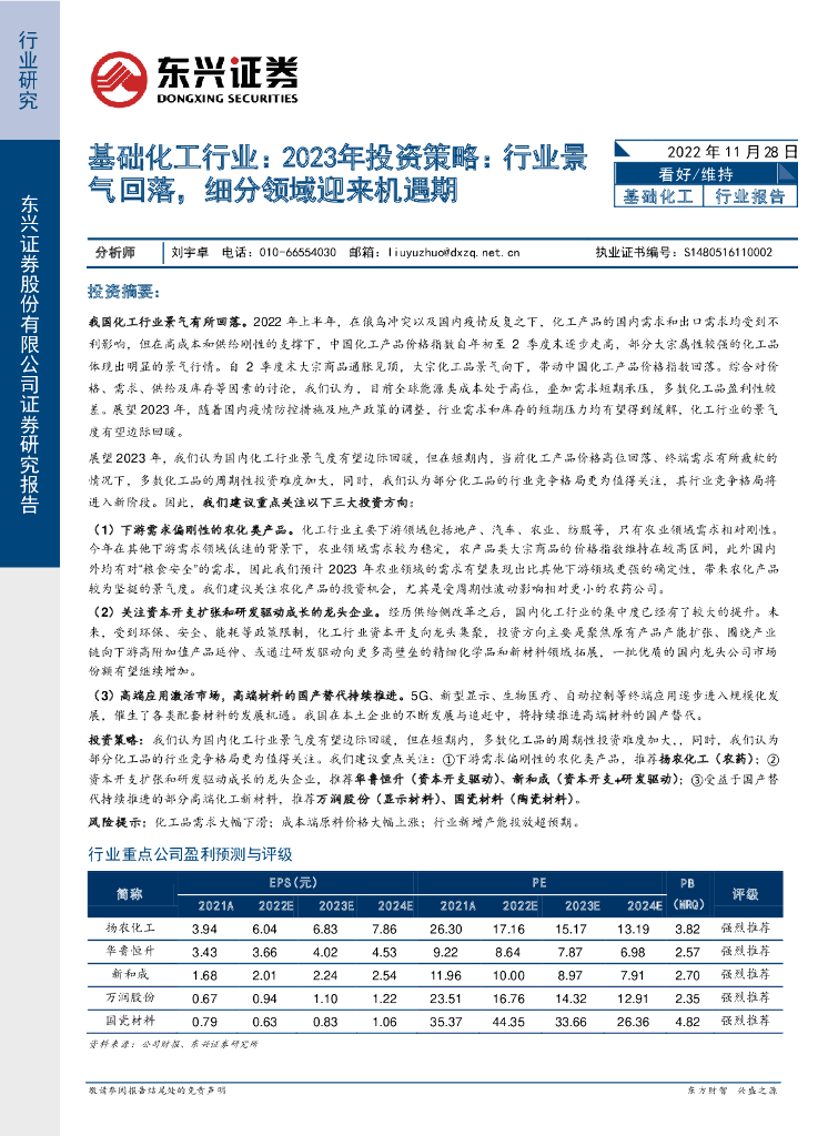 东兴证券:基础化工行业:2023年投资策略:行业景气回落,细分领域迎来机遇期.pdf